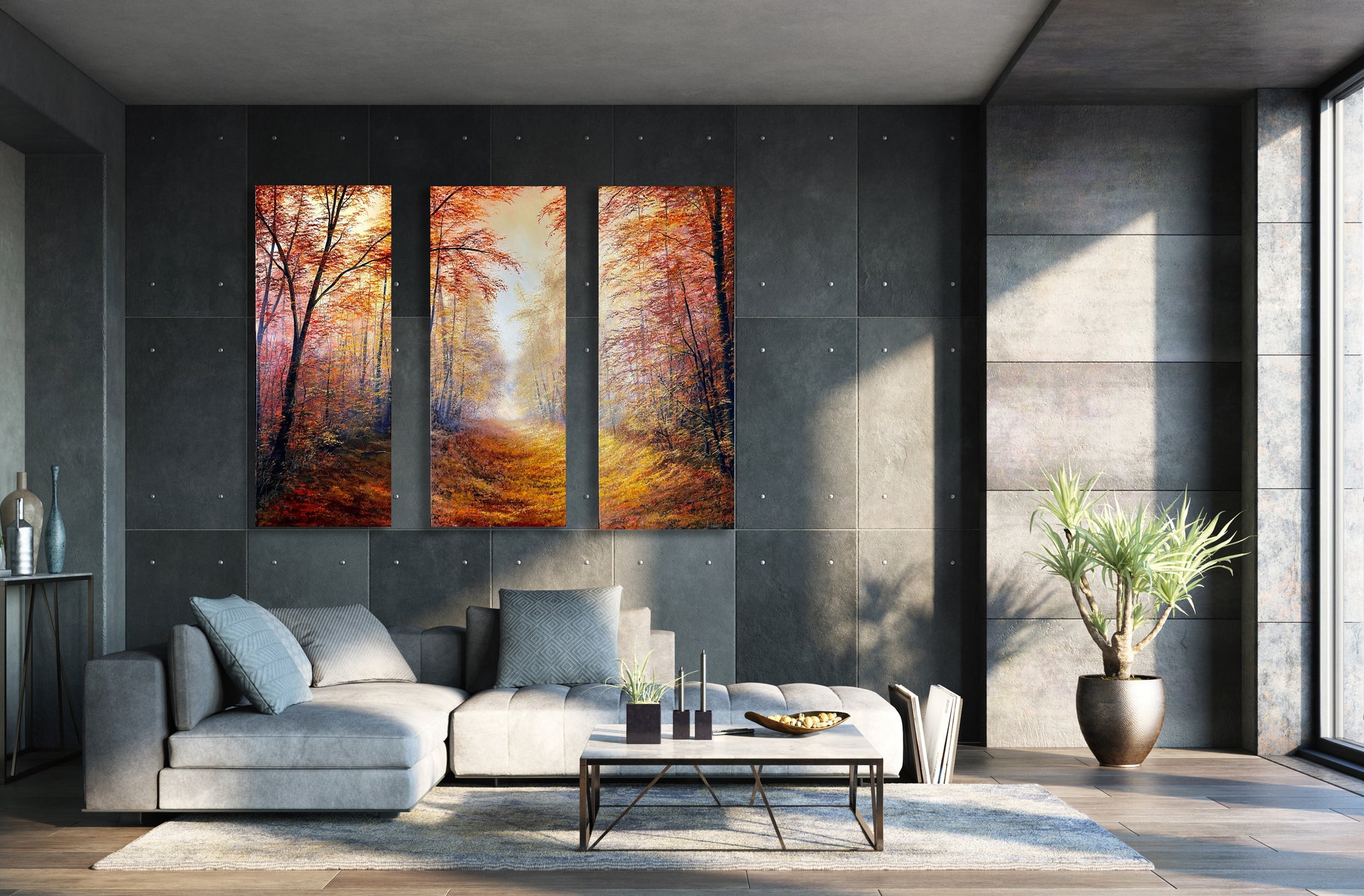 “Autumn Colours” – Original Triptych Forest Landscape by Kasia Wilson.
