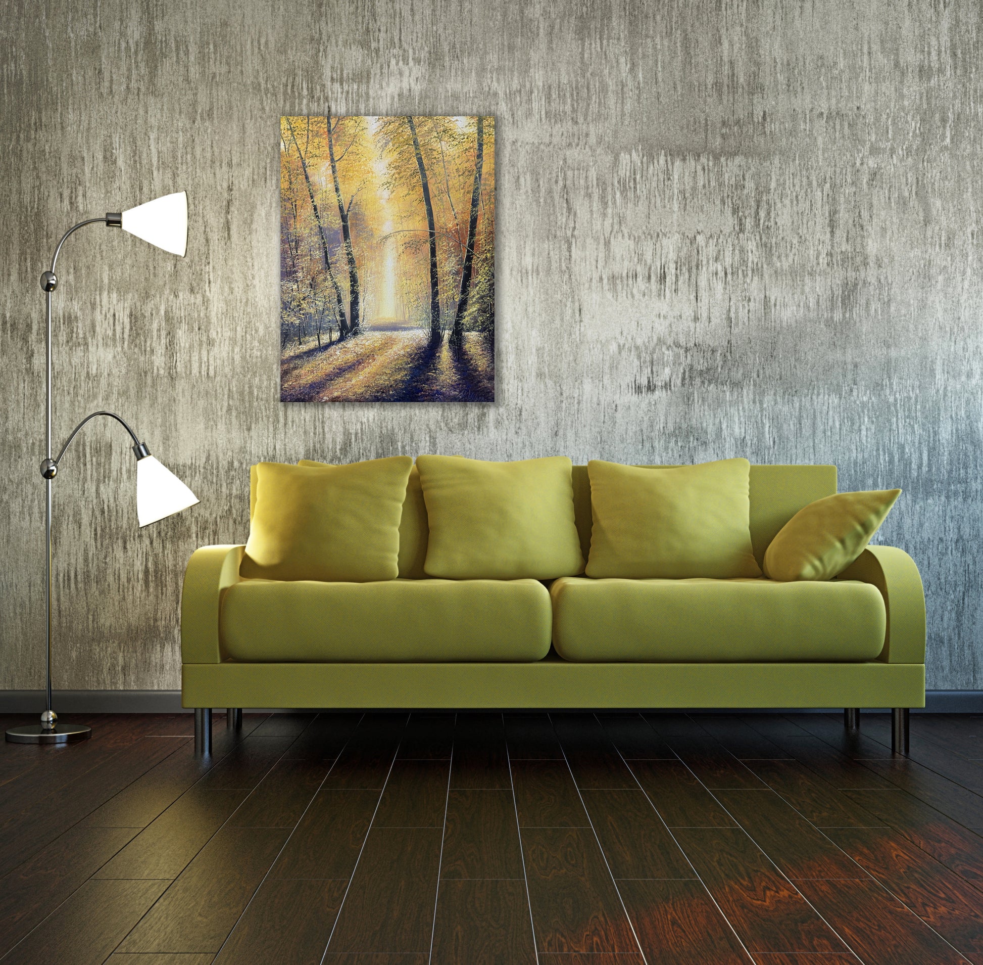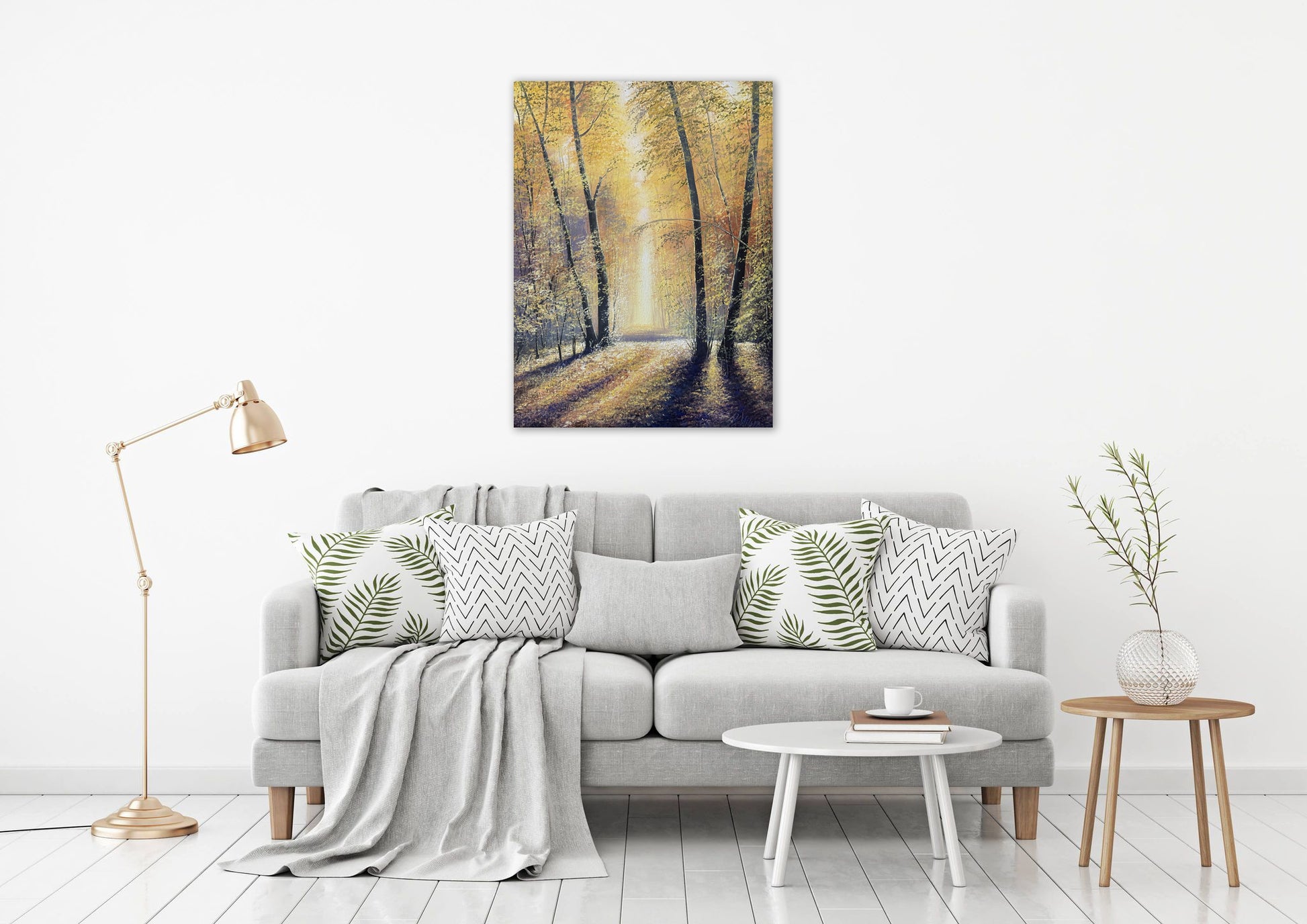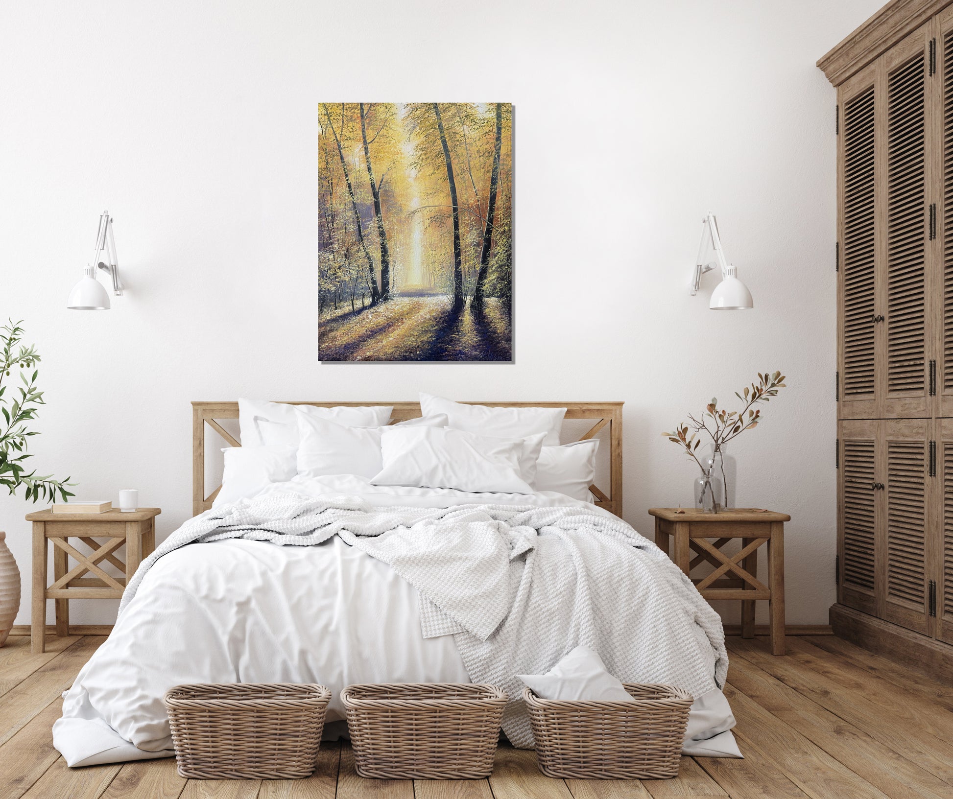 Original painting of a forest Autumn landscape. Acrylic on canvas (stretched canvas panel board). 45cm by 60cm. The canvas wraps around the edge 4mm deep.