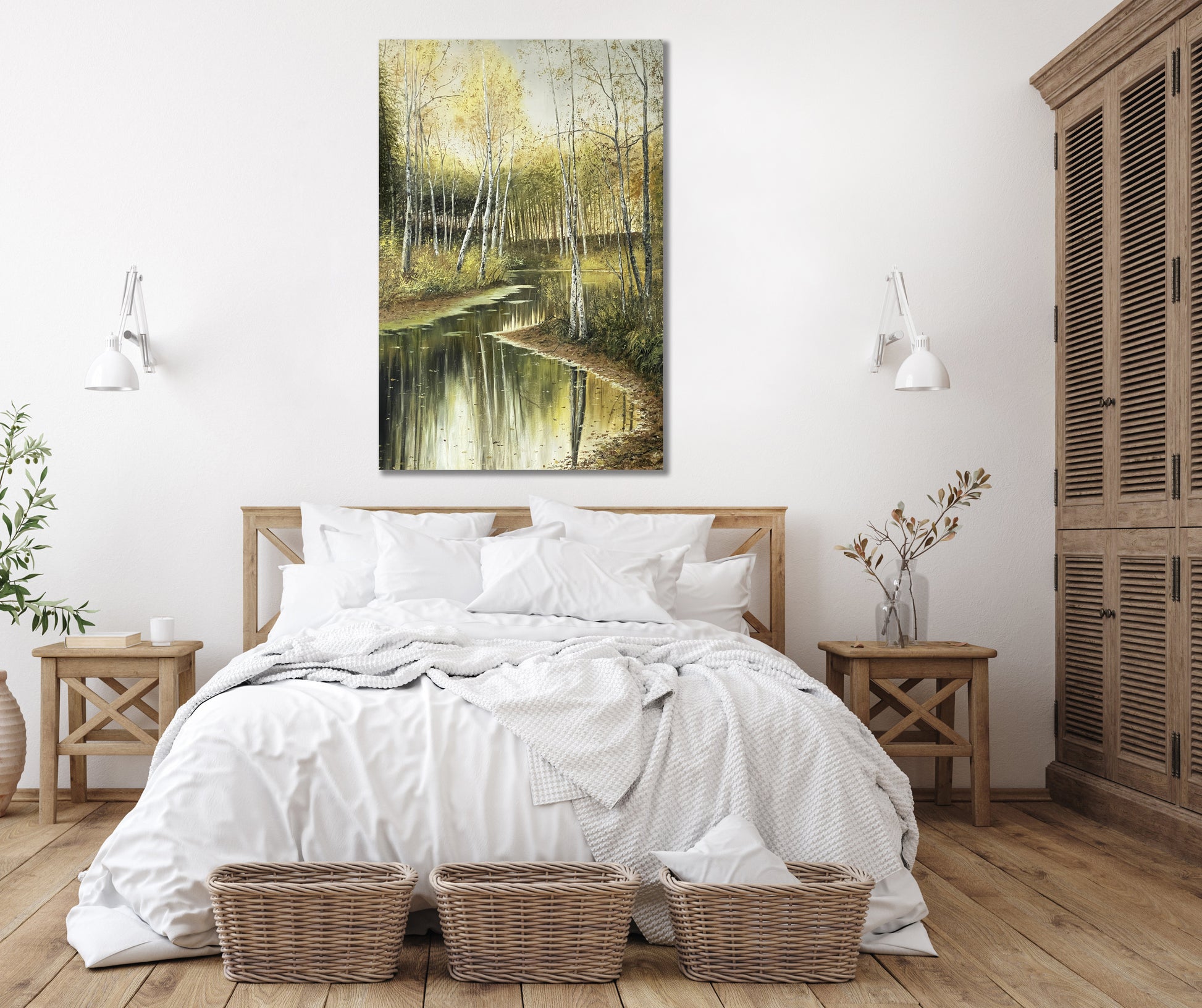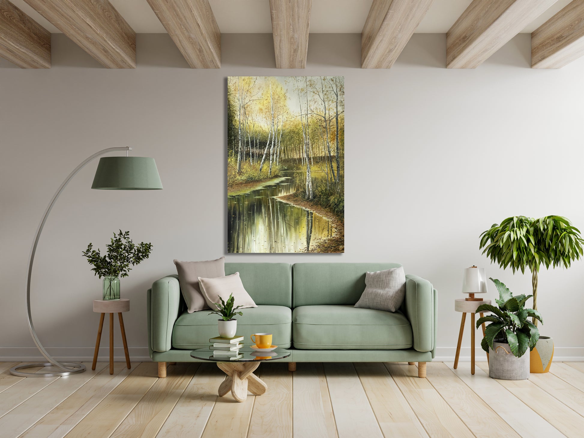 Step into the stillness of nature with “Peaceful Place”, a one-of-a-kind acrylic painting capturing the quiet beauty of an autumn forest. Soft golden tones, mirrored reflections, and delicate brushwork evoke a sense of calm and connection, an invitation to pause and breathe.